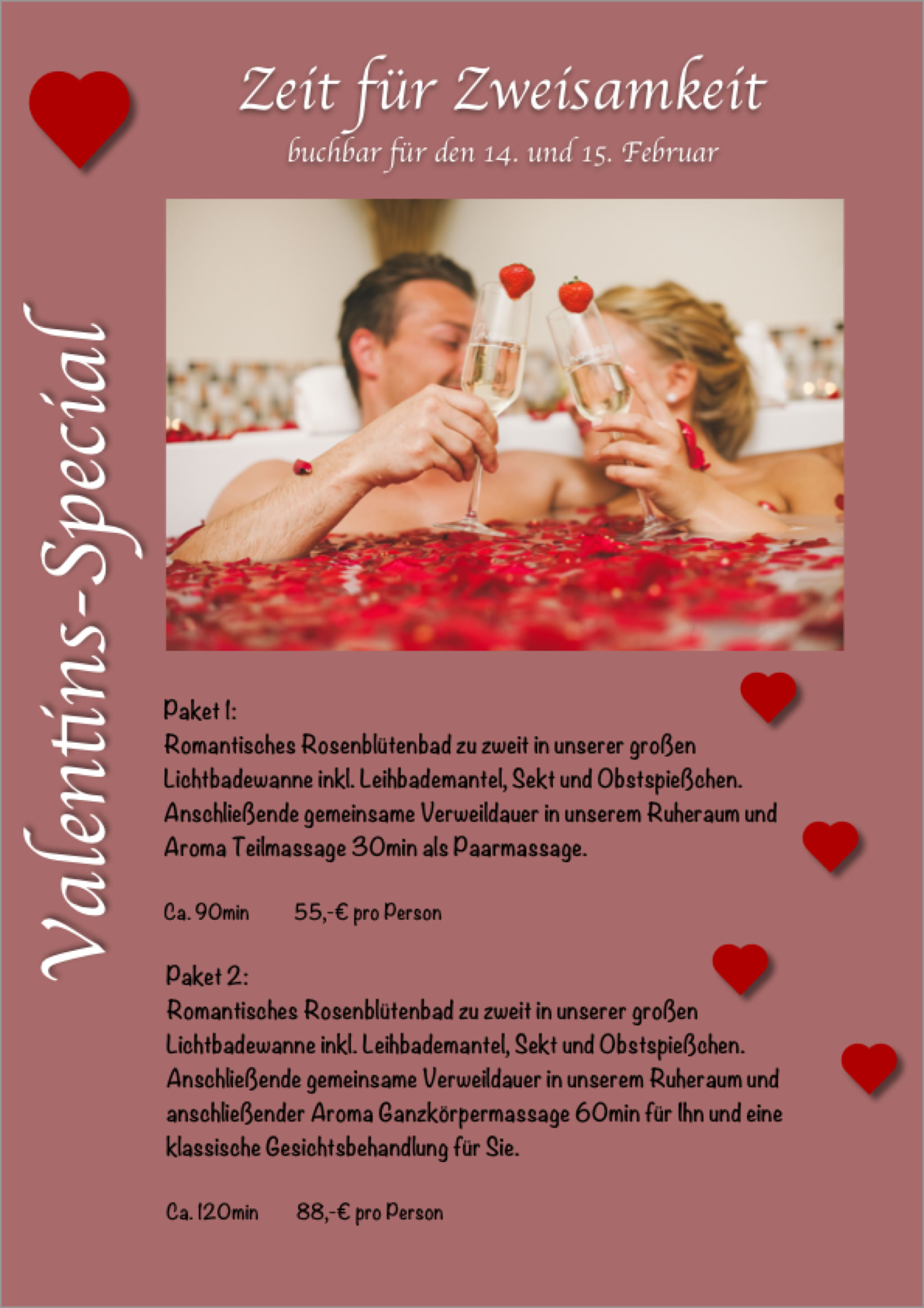 Ebenso ist es möglich bei uns mehrere Stunden Auszeit zu genießen oder Tagesarrangements in Anspruch zu nehmen.